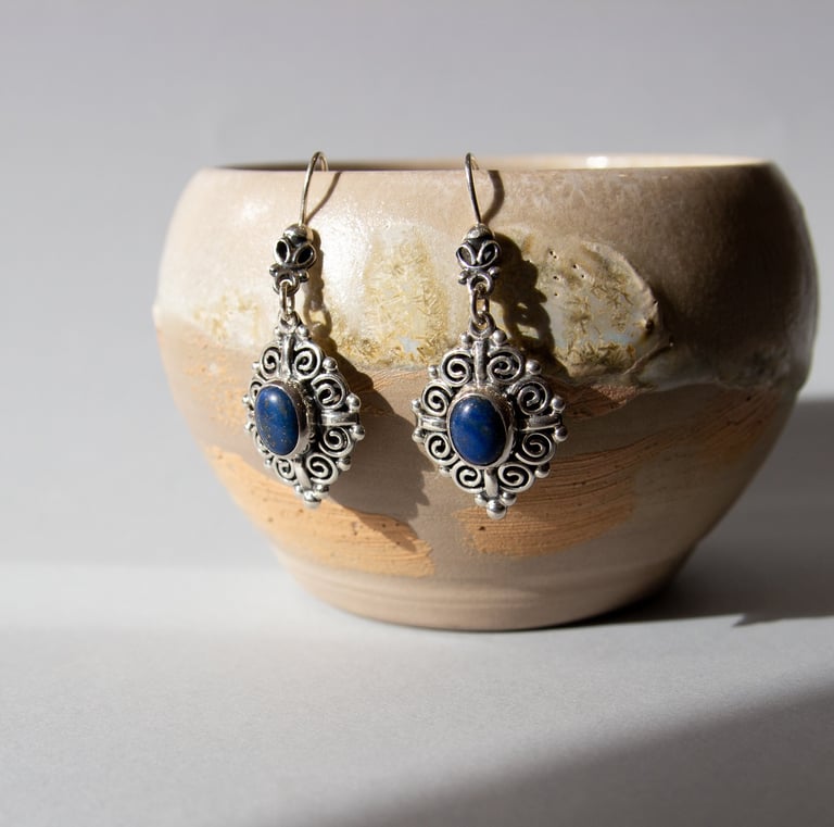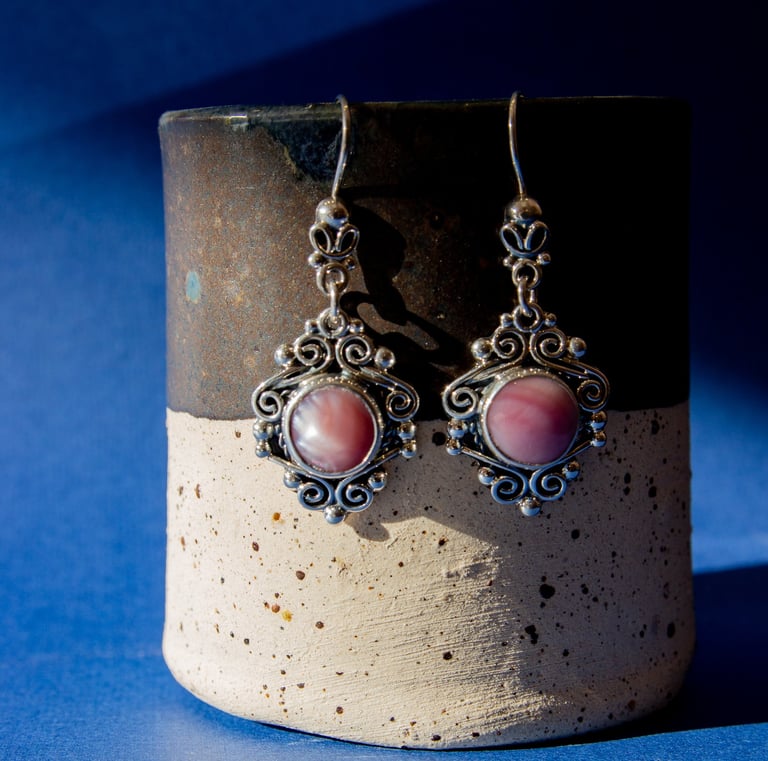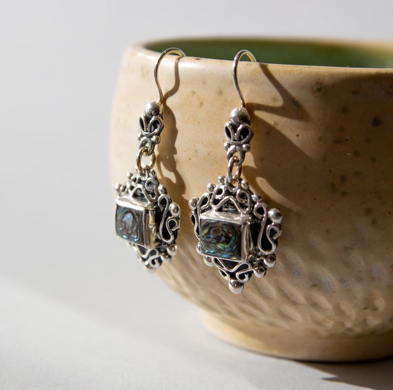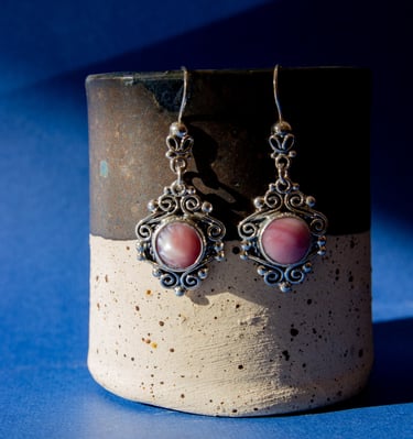 Joyas de plata de ley con piedras naturales, artesanía mexicana y cerámica.